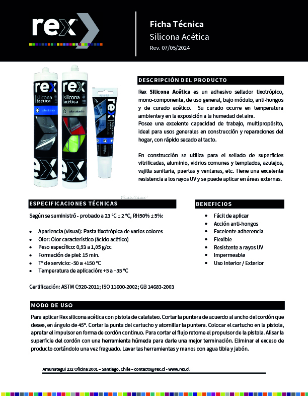 30307 REX SILICONA ACÉTICA BLANCA CARTUCHO 300 ML