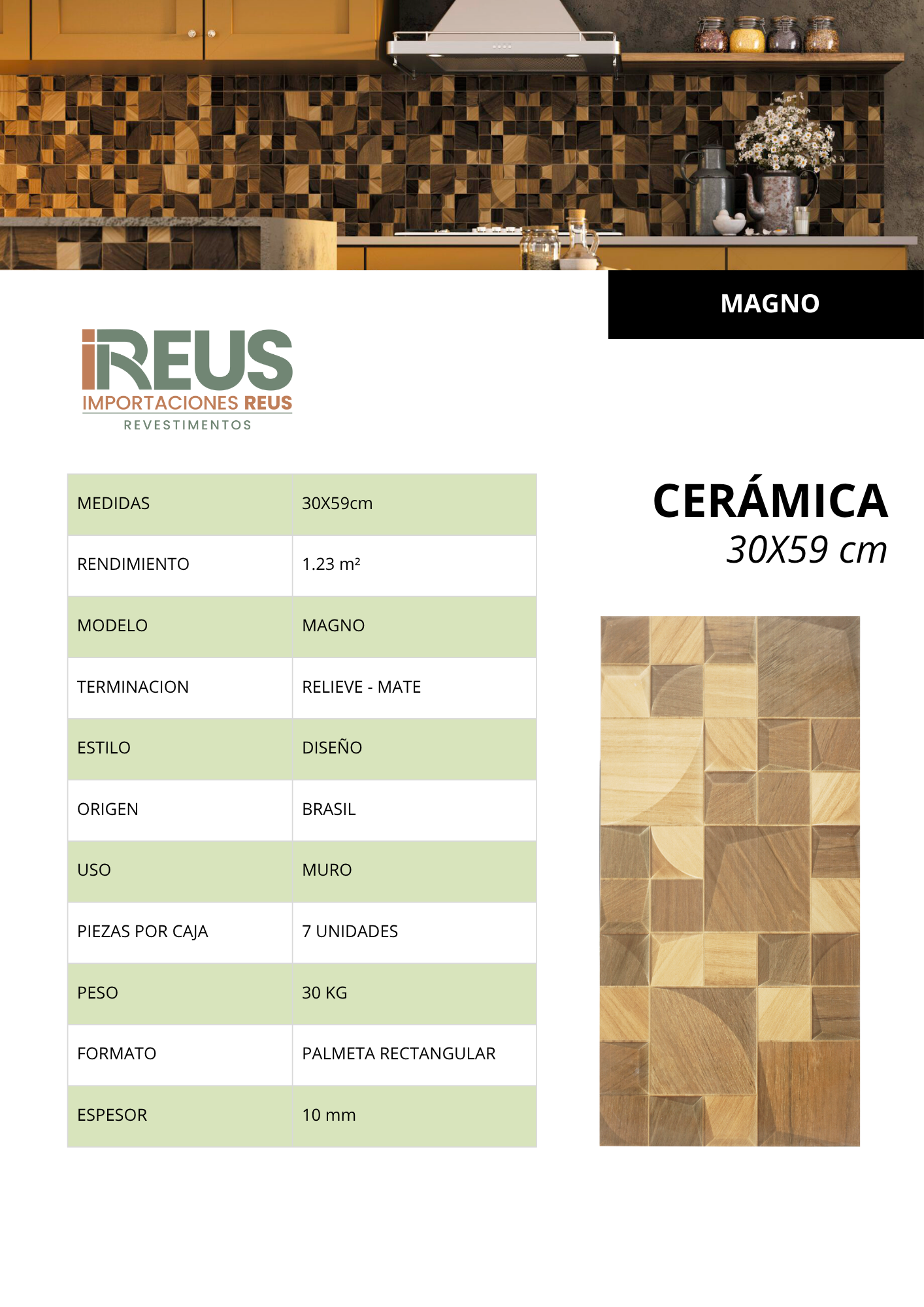 Cerámica 30x59cm $4.154xm² - MAGNO MD RT Stock por sucursal Stock por sucursal $ 5.109 Estilo Escoge Estilo Diseño Formato Escoge Formato 30x59 Textura Escoge Textura 3D - Alto Relieve cantidad Agregar al carro Encargar