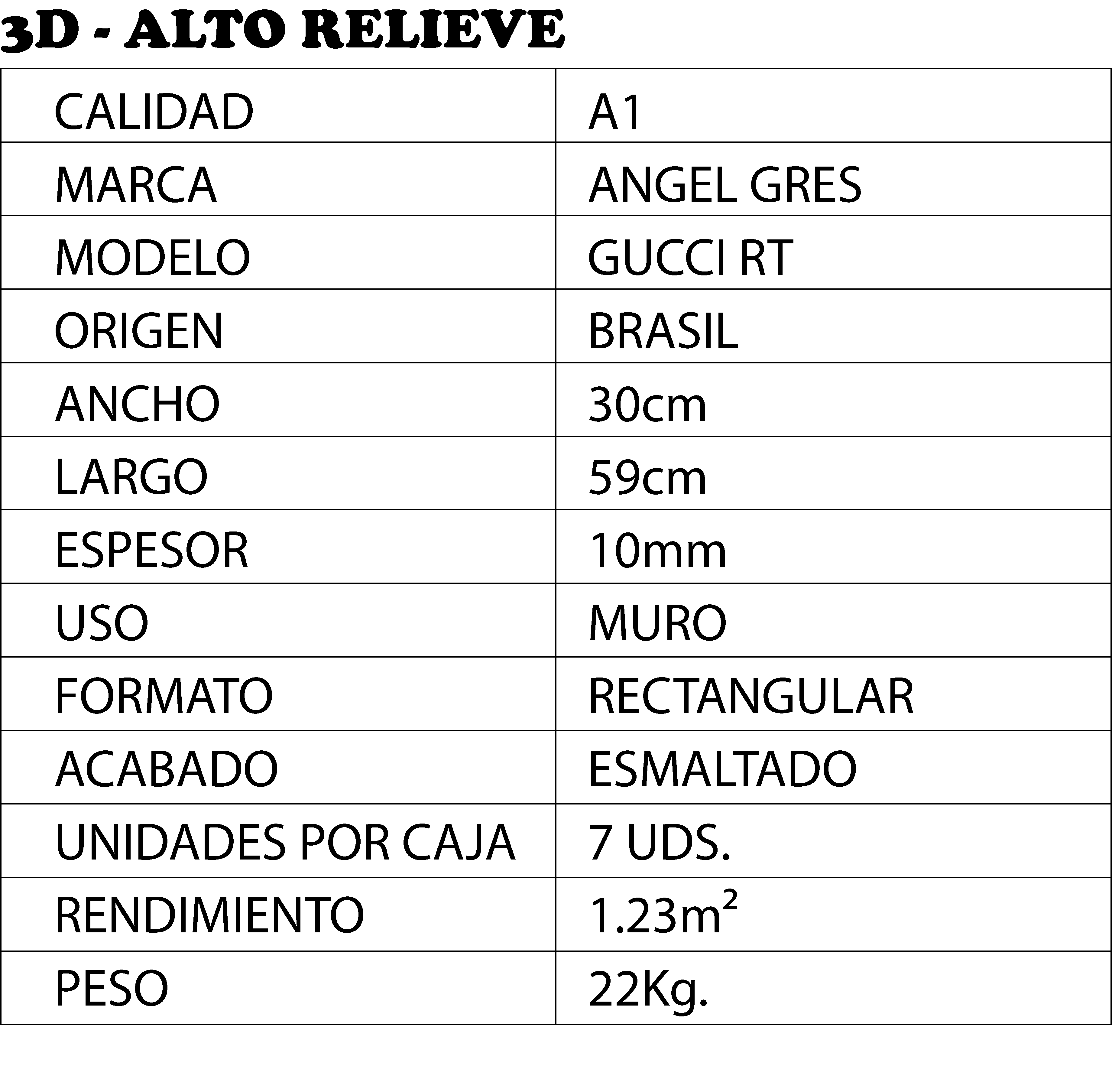 Cerámica 30x59cm $4.473 c/iva xm² - GUCCI RT Stock por sucursal Stock por sucursal $ 5.502 Estilo Escoge Estilo Diseño Formato Escoge Formato 30x59 Textura Escoge Textura 3D - Alto Relieve cantidad Agregar al carro Encargar Imágenes referenciales, los colores pueden variar según la configuración de cada pantalla.