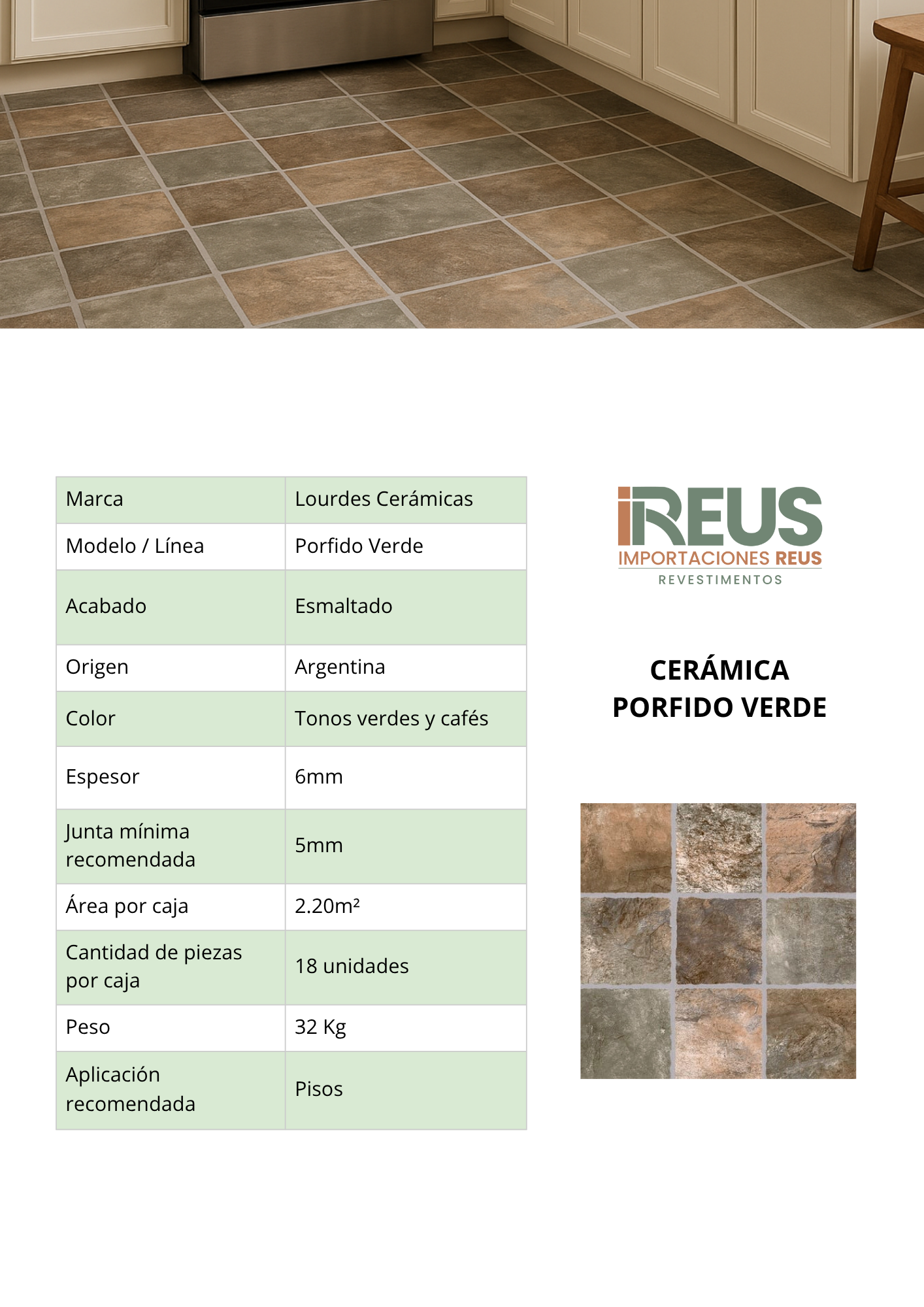 Cerámica 35x35cm $5.900xm² con iva - Porfido Verde Stock por sucursal Stock por sucursal $ 12.980 Textura Escoge Textura Esmaltado Formato Escoge Formato 35x35 Estilo Escoge Estilo Diseño cantidad Agregar al carro Encargar