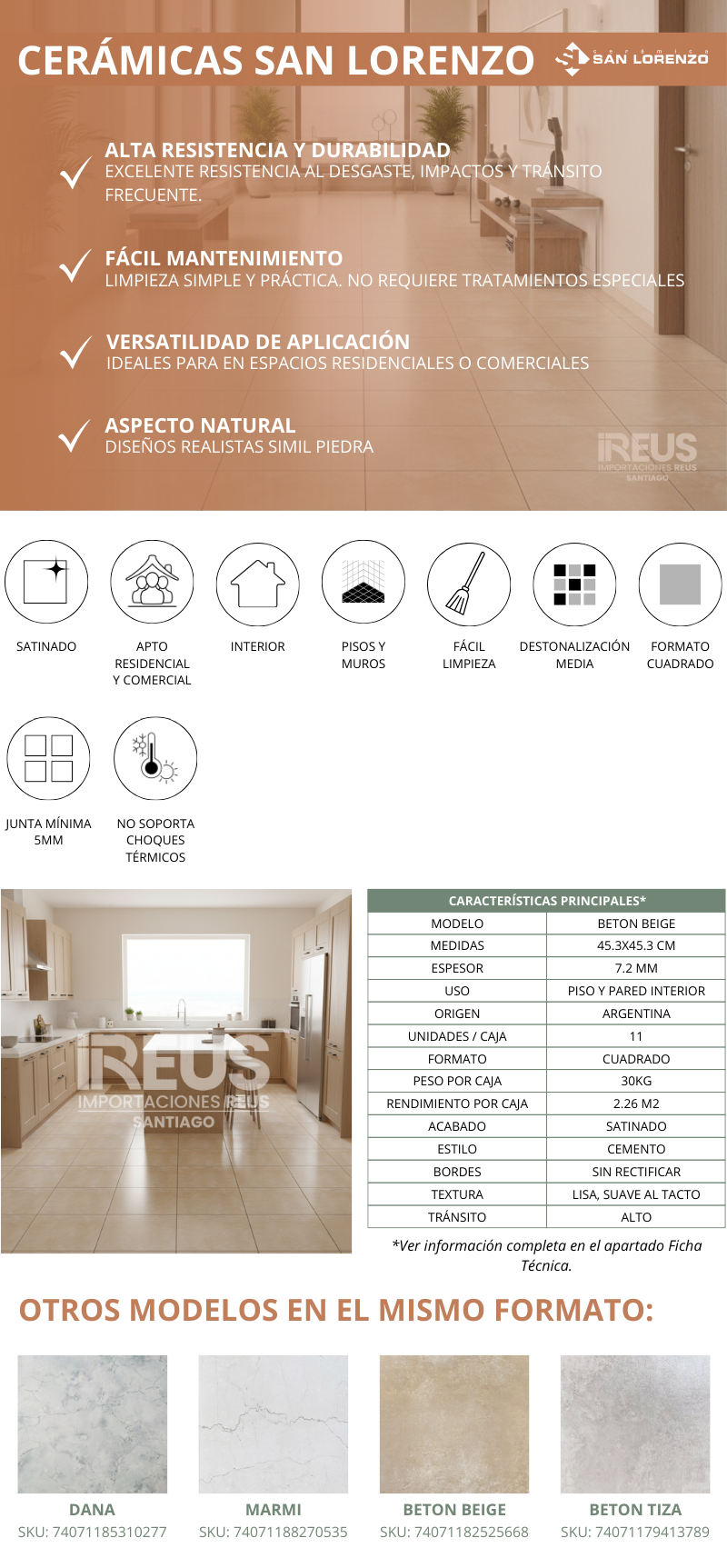 Cerámica 45.3x45.3cm $5.490xm² - Beton Beige Stock por sucursal Stock por sucursal $ 12.407 cantidad Agregar al carro Encargar Imágenes referenciales: los colores pueden variar según la configuración de cada pantalla.