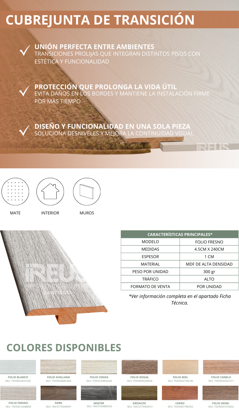 Cubrejunta de Transición 9X45X2400mm - FOLIO FRESNO
