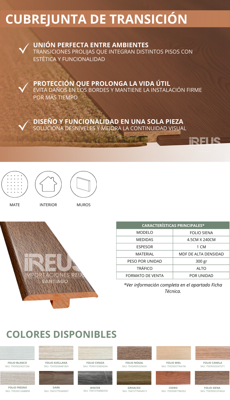 Cubrejunta de Transición 9X45X2400mm - FOLIO SIENA