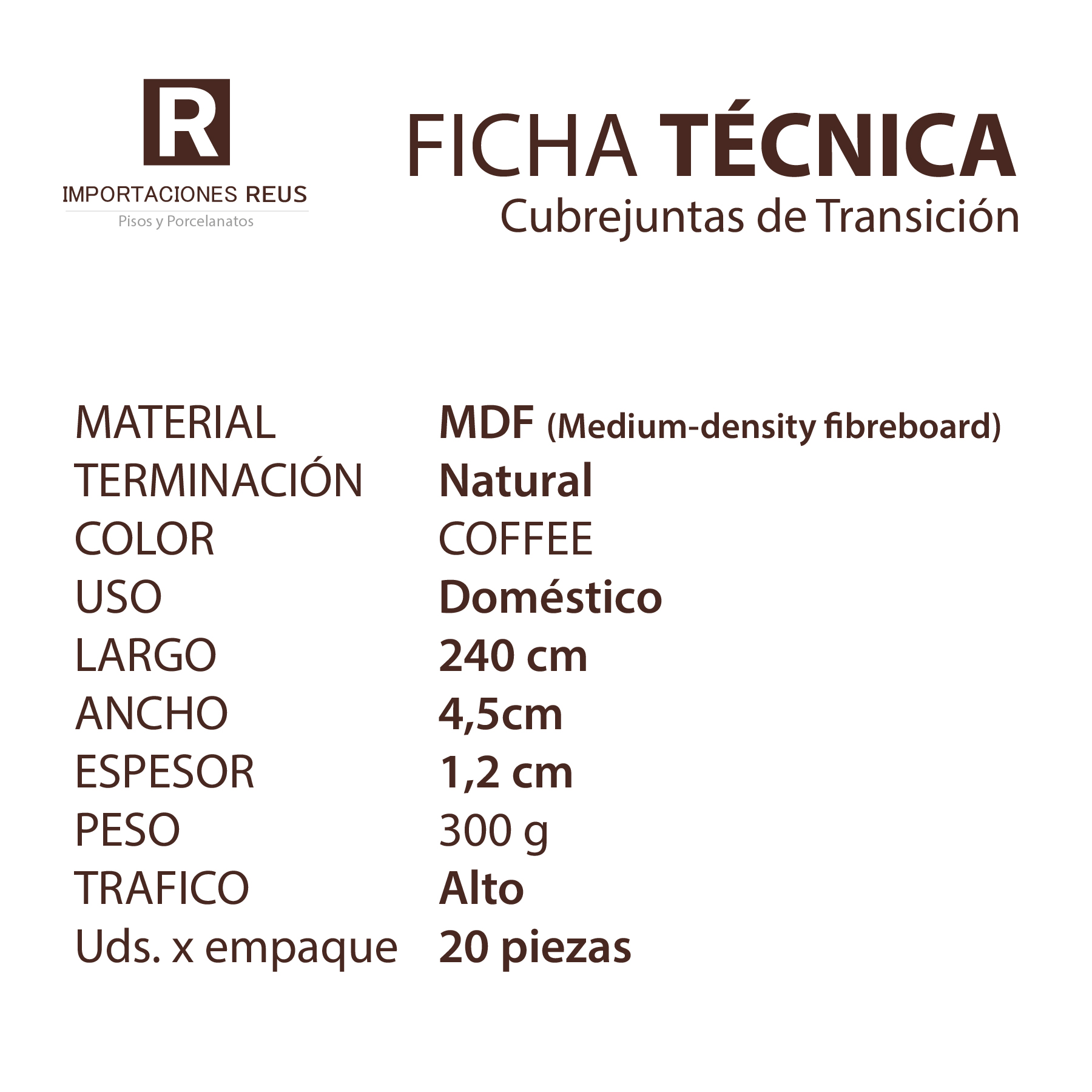Cubrejunta de transición COFFEE 2.40m Stock por sucursal Stock por sucursal $ 7.490 cantidad Agregar al carro Encargar