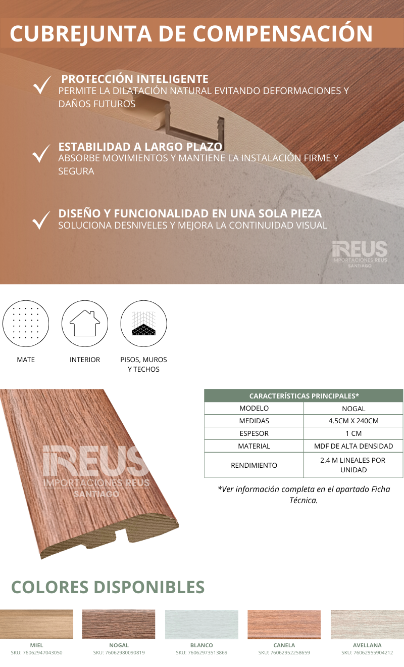 Cubrejuntas de Compensación - Nogal Stock por sucursal Stock por sucursal $ 7.490 cantidad Agregar al carro Encargar Imágenes referenciales: los colores pueden variar según la configuración de cada pantalla.
