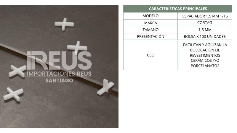 Espaciador 1.5 mm 1/16 (100 unid. x bolsa) Stock por sucursal Stock por sucursal $ 1.290 cantidad Agregar al carro Encargar Imágenes referenciales: los colores pueden variar según la configuración de cada pantalla.