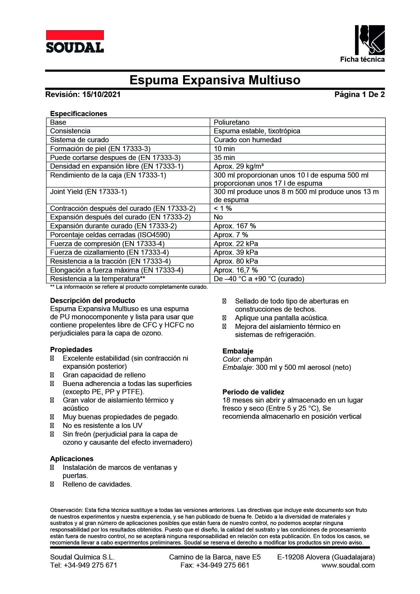 Fijación de Ventanas y Puertas, Relleno de huecos y cavidades en construcción, aislamiento acústico, térmico y contra el polvo.