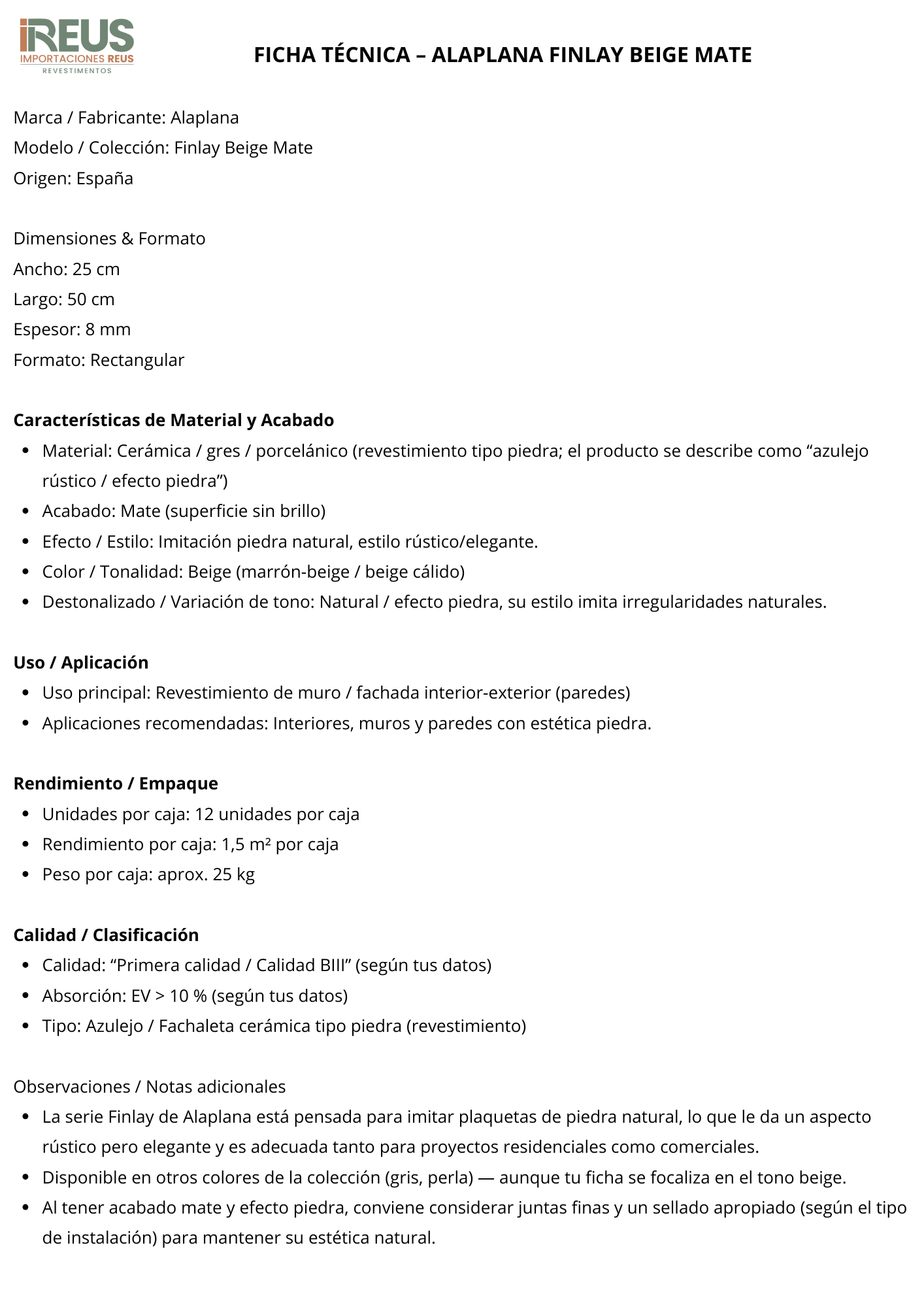 Fachaleta 25X50cm $9.093 xm² - FINLAY BEIGE MATE Stock por sucursal Stock por sucursal $ 13.640 cantidad Agregar al carro Encargar Imágenes referenciales: los colores pueden variar según la configuración de cada pantalla.