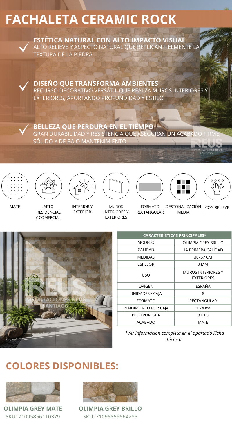 Fachaleta 38x57cm $8.394xm² - Olimpia Grey Brillo
