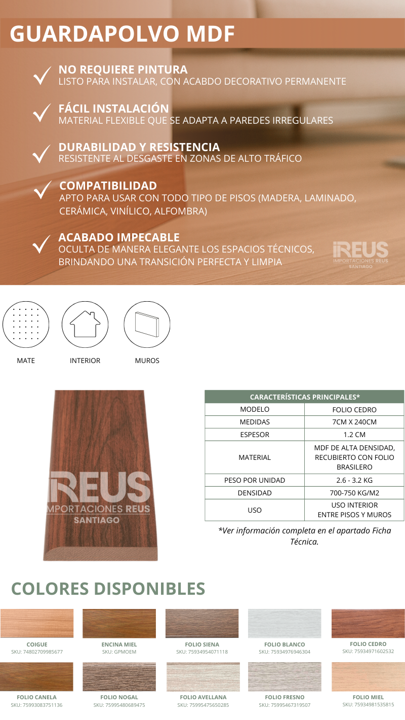 GUARDAPOLVO 12x70x2400mm - Folio Cedro