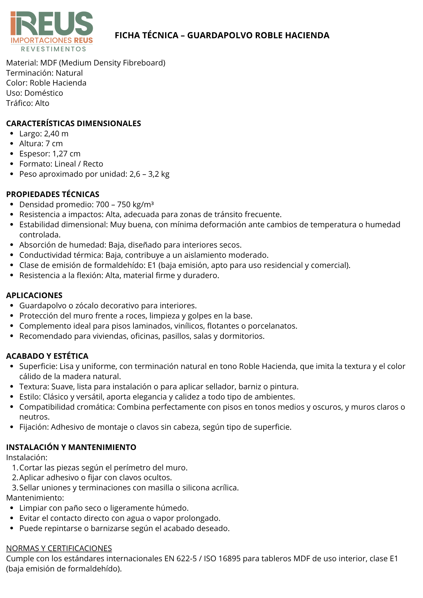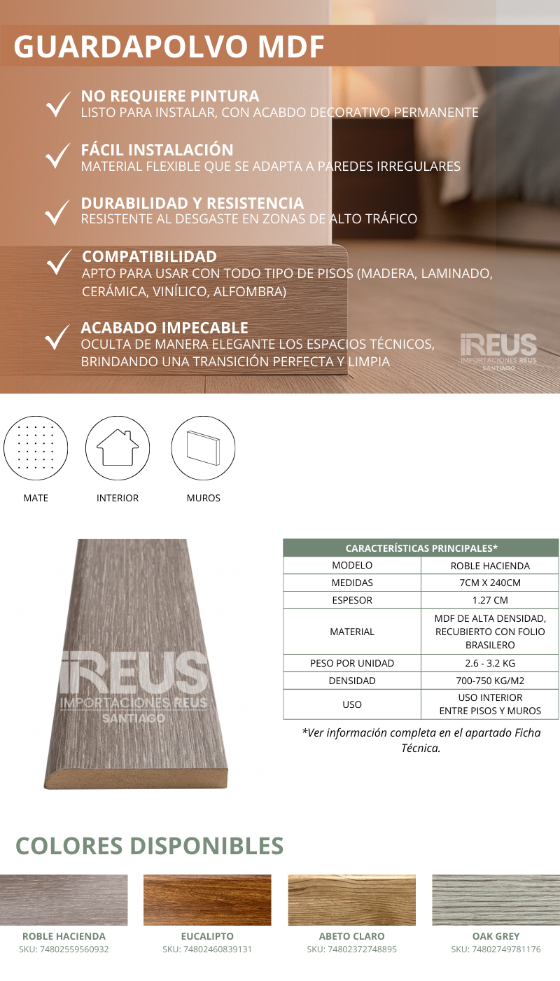 Guardapolvo Roble Hacienda 127mm x 70mm x 240mm