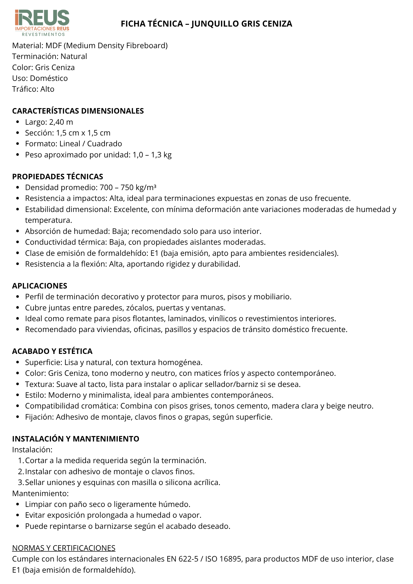 Junquillo Gris Ceniza 15x15x2.4 Moldecor Stock por sucursal Stock por sucursal $ 1.590 cantidad Agregar al carro Encargar
