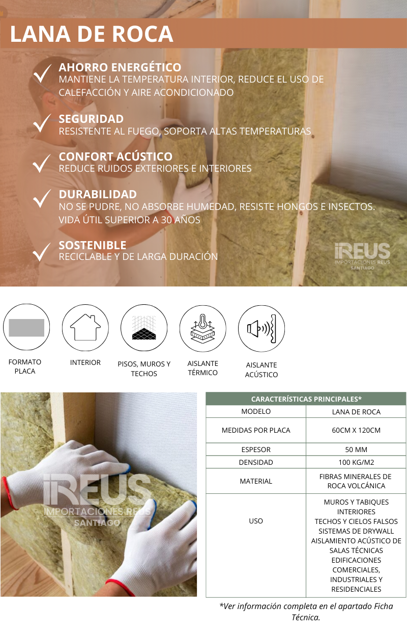 LANA DE ROCA 0.60x1.2x50mm $4.990xm² KGS/M3 100