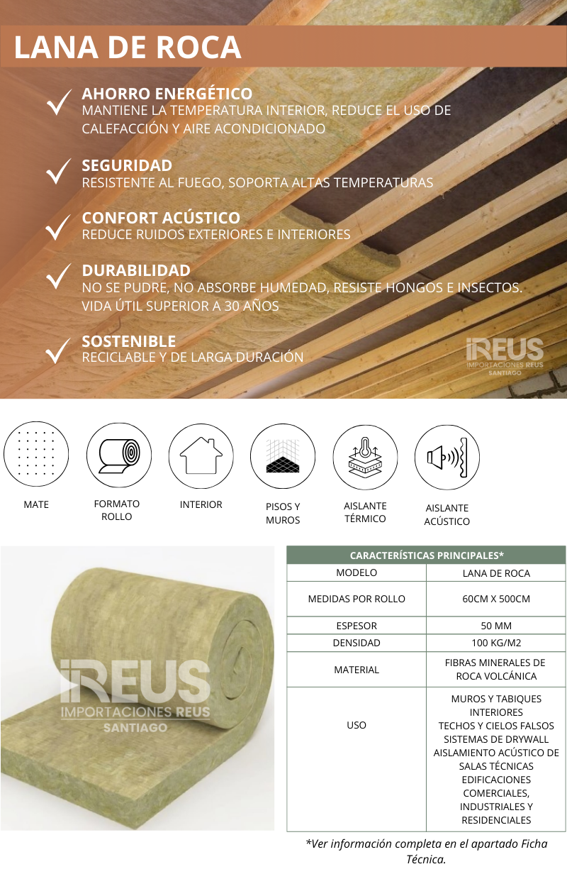 LANA DE ROCA 0.60x5mx50mm $5.290xm² KGS/M3 100