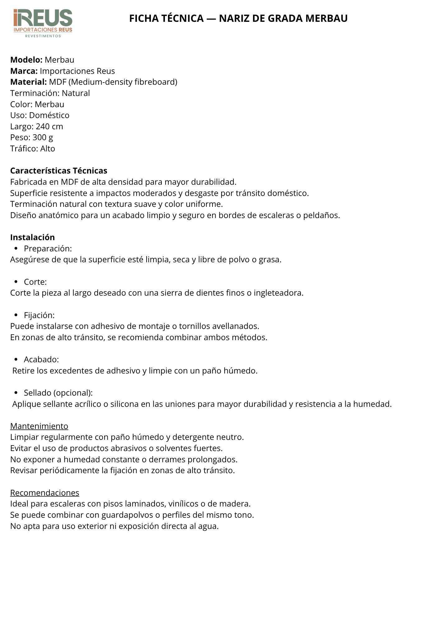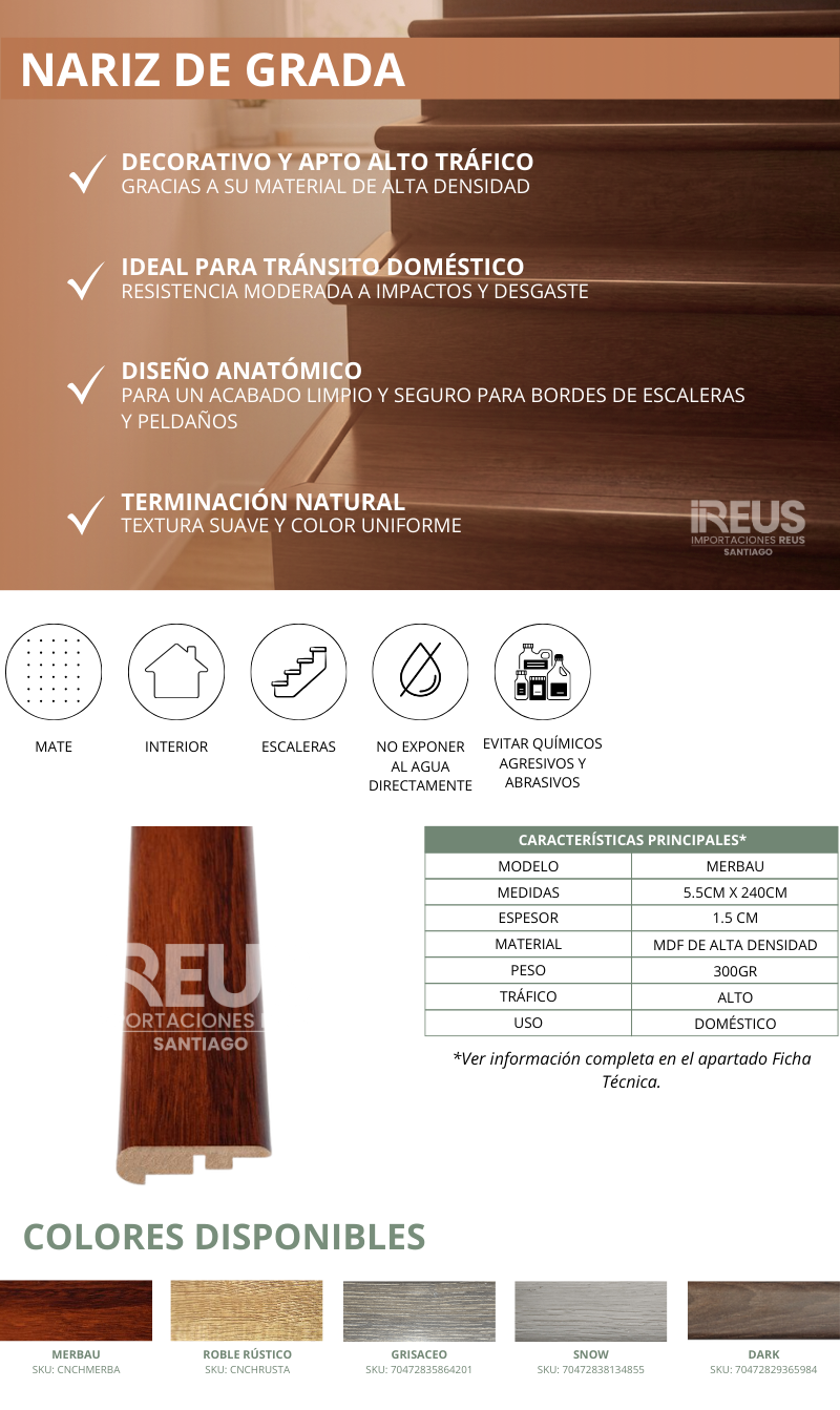 Nariz de grada Merbau Stock por sucursal Stock por sucursal $ 6.293 cantidad Agregar al carro Encargar Imágenes referenciales: los colores pueden variar según la configuración de cada pantalla.