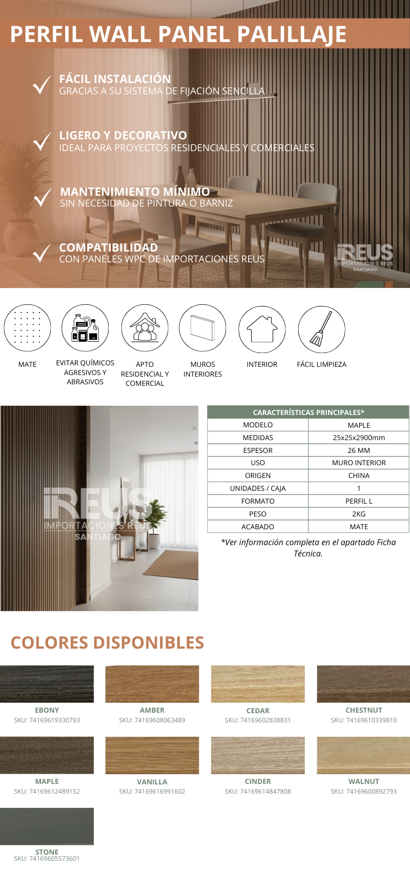 Perfil Wall Panel Palillaje 25x25x2900mm - MAPLE Stock por sucursal Stock por sucursal $ 4.990 cantidad Agregar al carro Encargar Imágenes referenciales: los colores pueden variar según la configuración de cada pantalla.