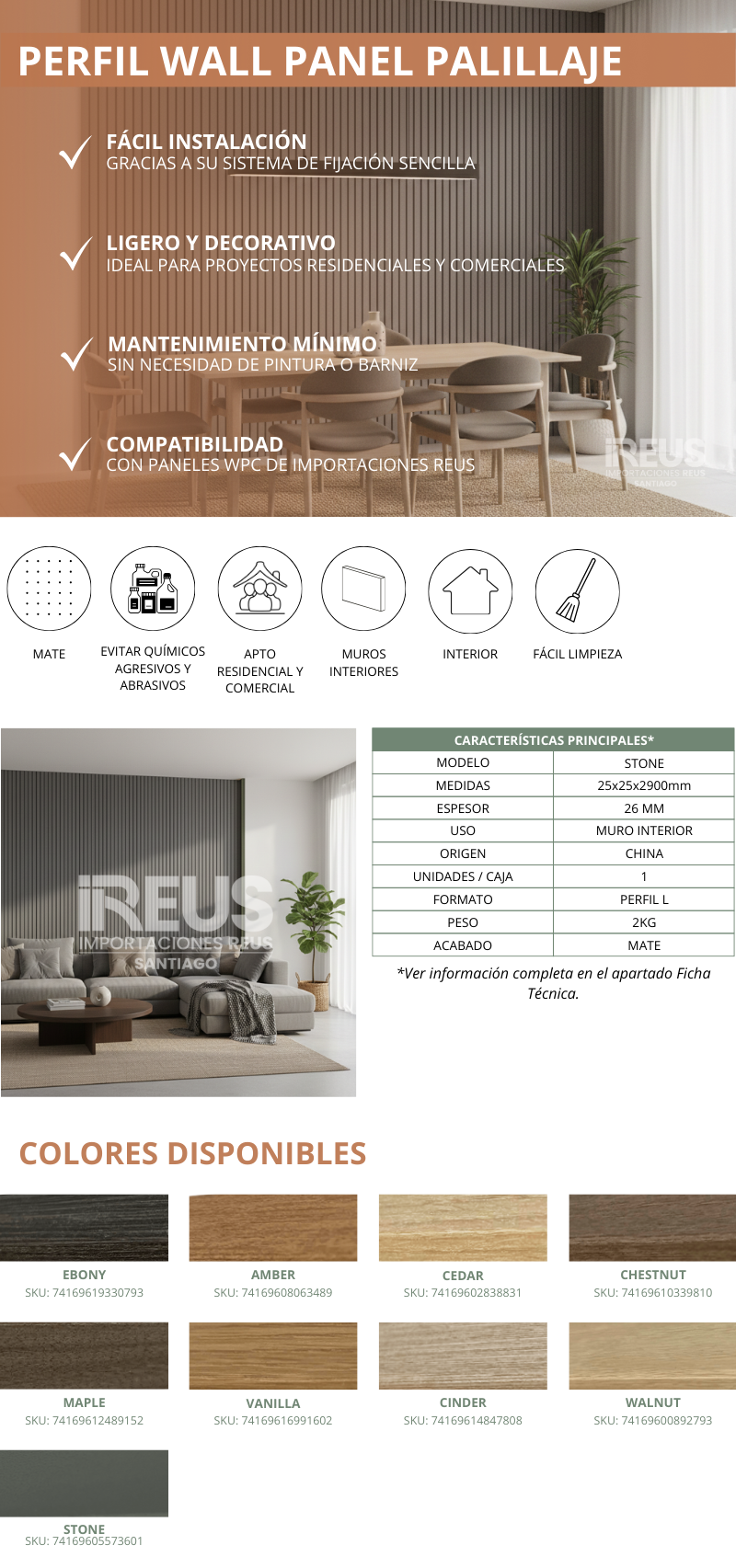 Perfil Wall Panel Palillaje 25x25x2900mm - STONE Stock por sucursal Stock por sucursal $ 4.990 cantidad Agregar al carro Encargar Imágenes referenciales: los colores pueden variar según la configuración de cada pantalla.