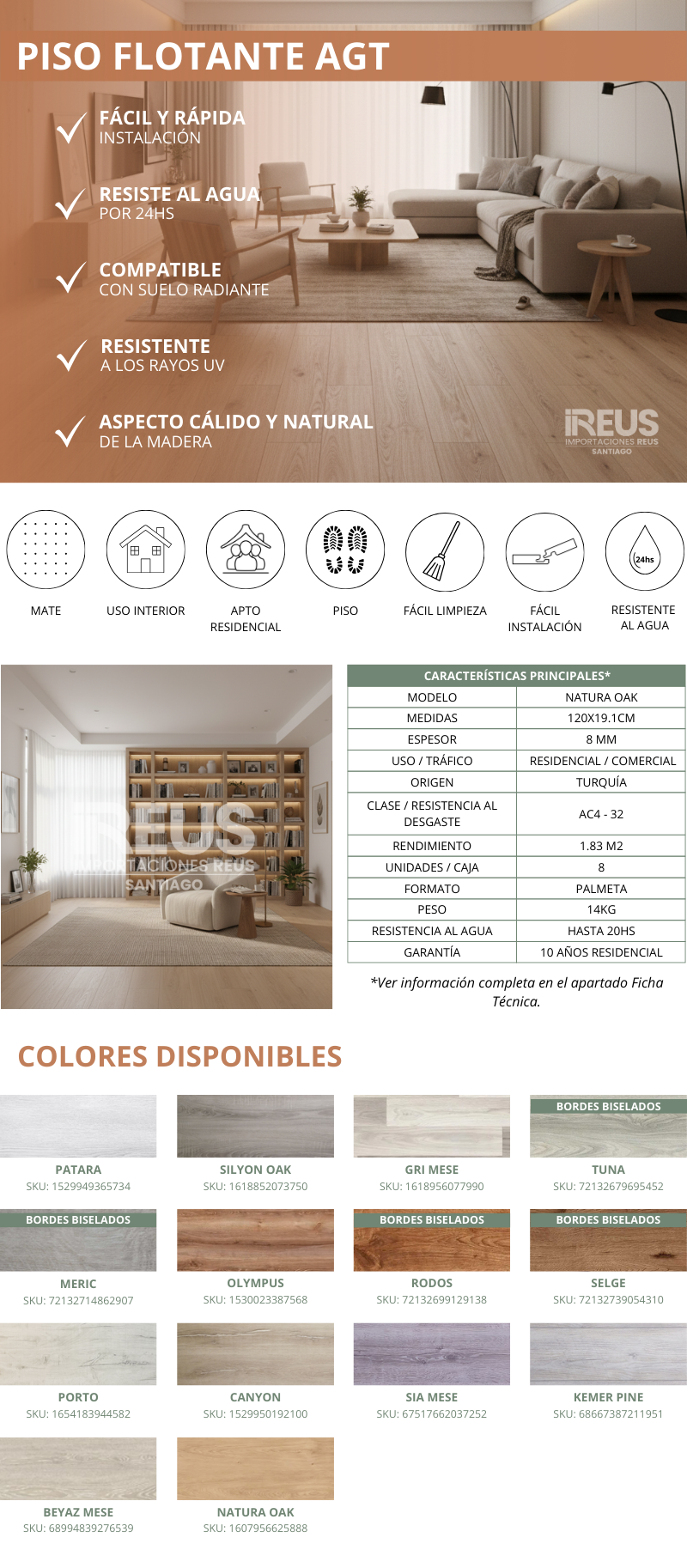Piso Flotante 120x19.1cm $10.990 m² c/iva - Natura Oak Stock por sucursal Stock por sucursal $ 20.112 cantidad Agregar al carro Encargar Imágenes referenciales: los colores pueden variar según la configuración de cada pantalla.