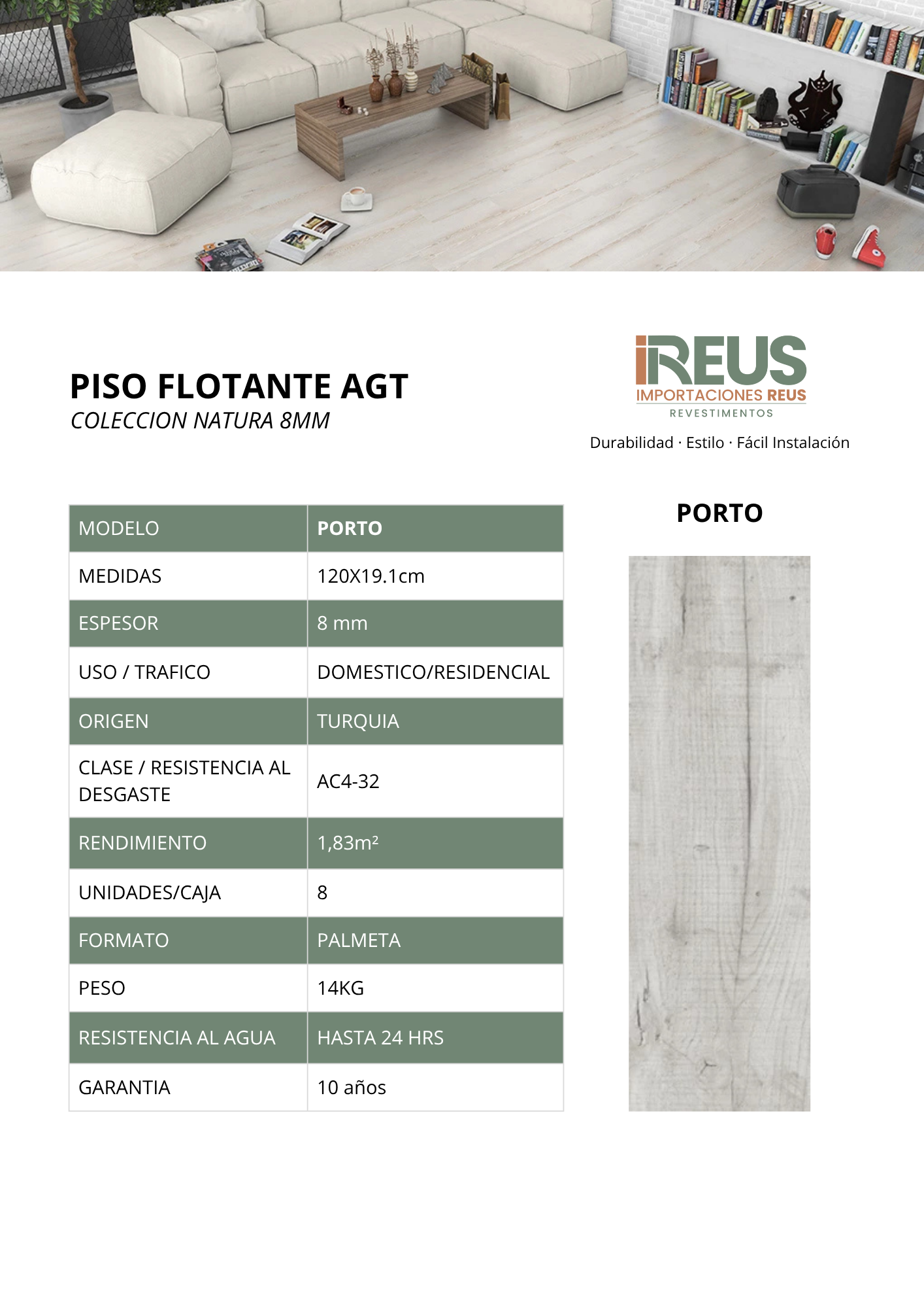 Piso Flotante 120x19.1cm $10.990 m² c/iva - Porto
