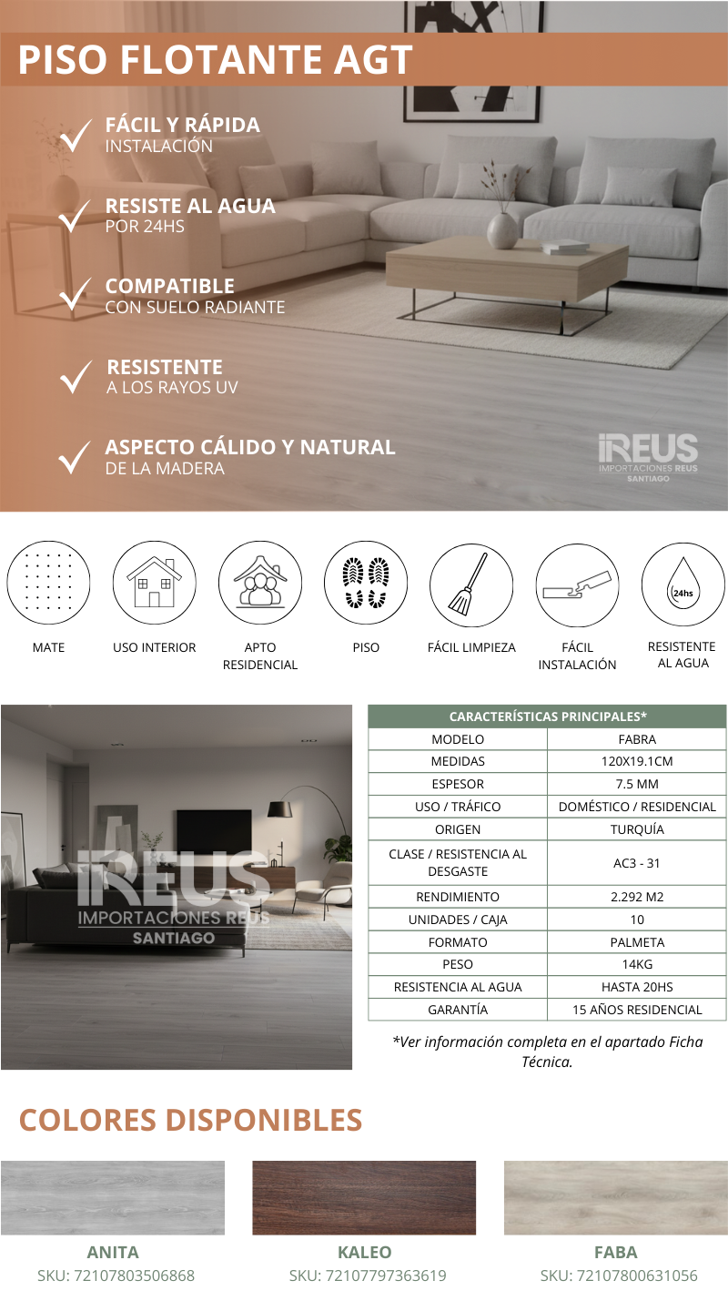 PISO FLOTANTE 120x19.1cm $7.986 xm² c/iva - FABA Stock por sucursal Stock por sucursal $ 18.305 cantidad Agregar al carro Encargar Imágenes referenciales, los colores pueden variar según la configuración de cada pantalla.