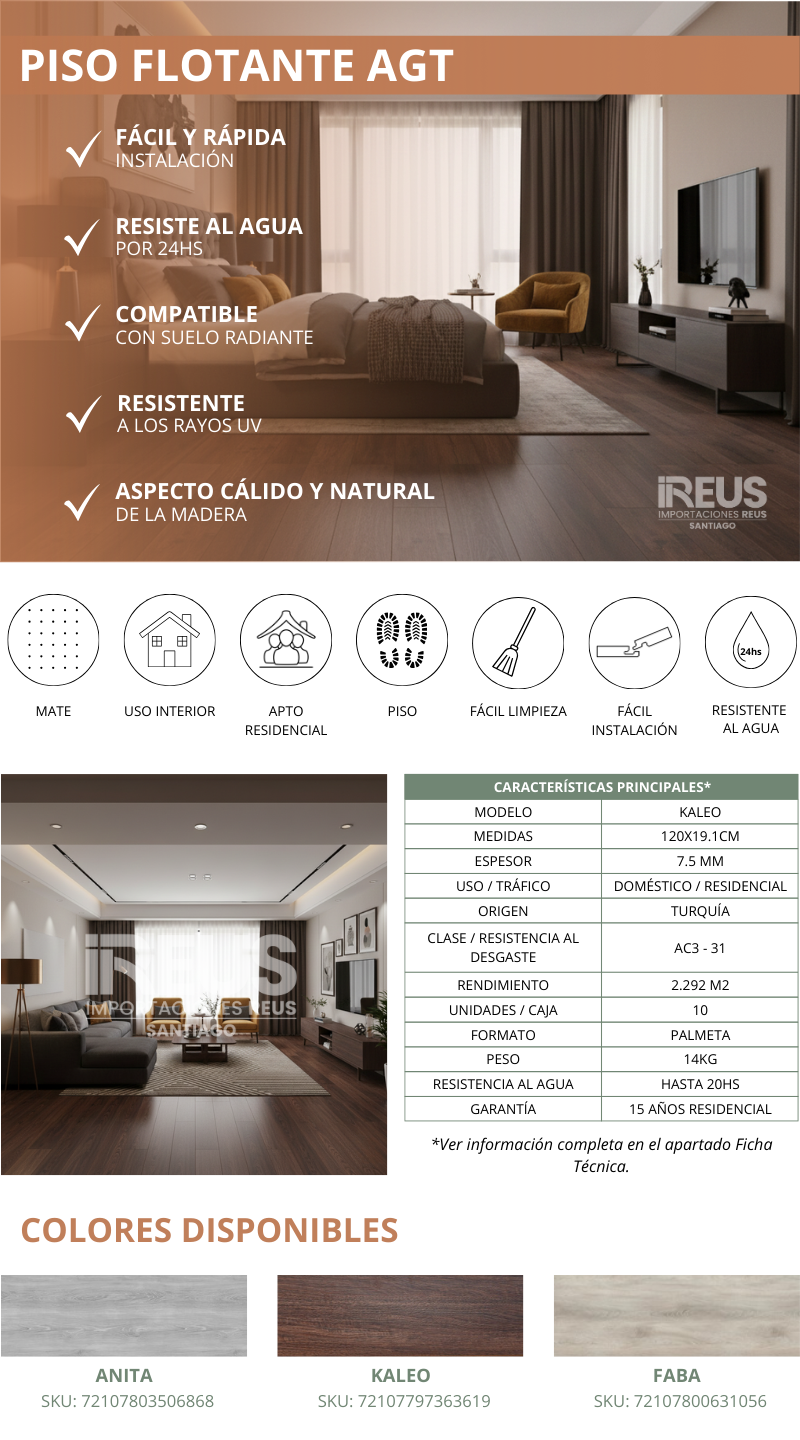 PISO FLOTANTE 120x19.1cm $7.986 xm² c/iva - KALEO2