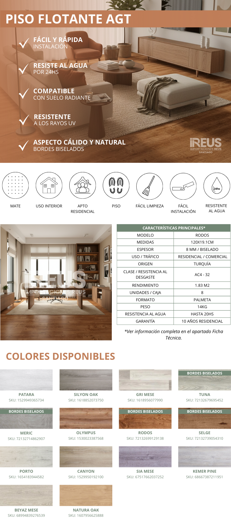 Piso Flotante Biselado120x19.1cm $10.990 m² c/iva - Rodos Stock por sucursal Stock por sucursal $ 20.112 cantidad Agregar al carro Encargar Imágenes referenciales: los colores pueden variar según la configuración de cada pantalla.