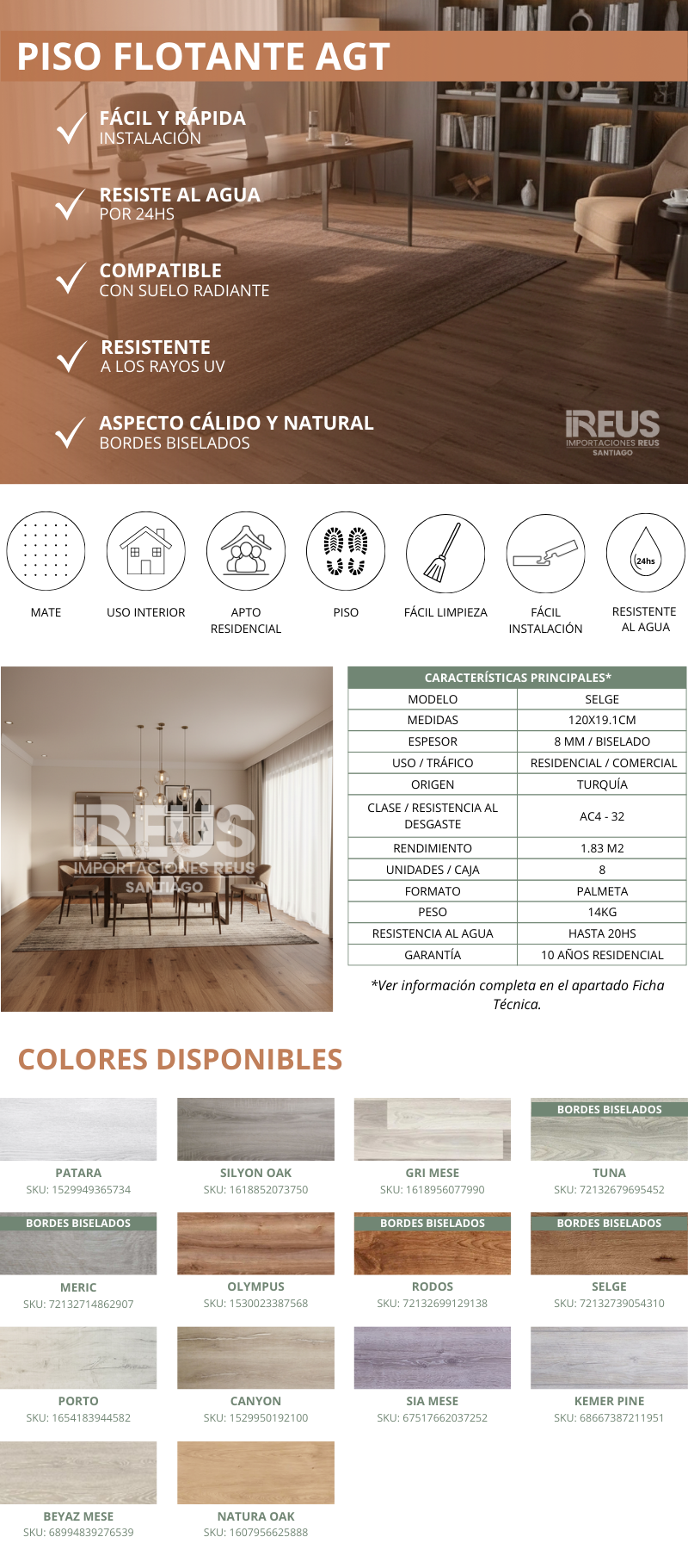 Piso Flotante Biselado120x19.1cm $10.990 m² c/iva - Selge Stock por sucursal Stock por sucursal $ 20.112 cantidad Agregar al carro Encargar Imágenes referenciales: los colores pueden variar según la configuración de cada pantalla.
