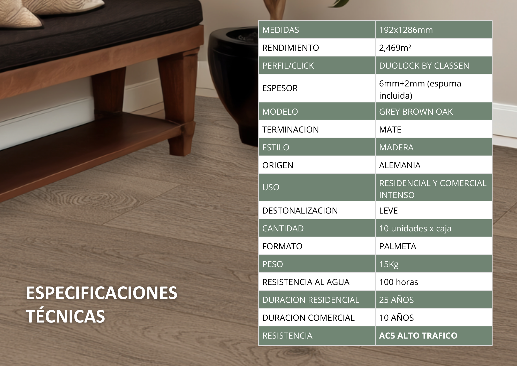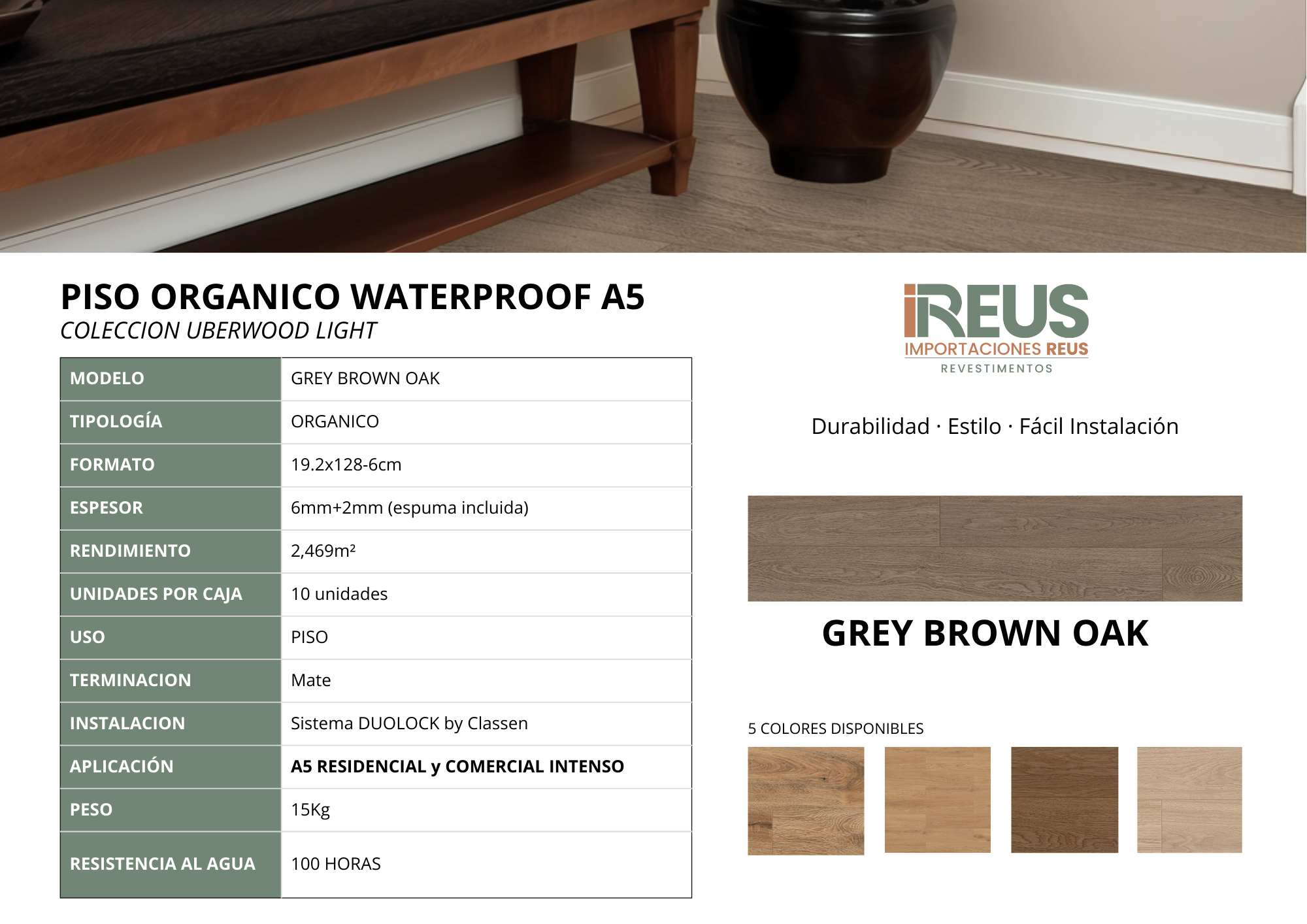 Piso Flotante Impermeable 19.2x128.6cm $15.490xm²- GREY BROWN OAK
