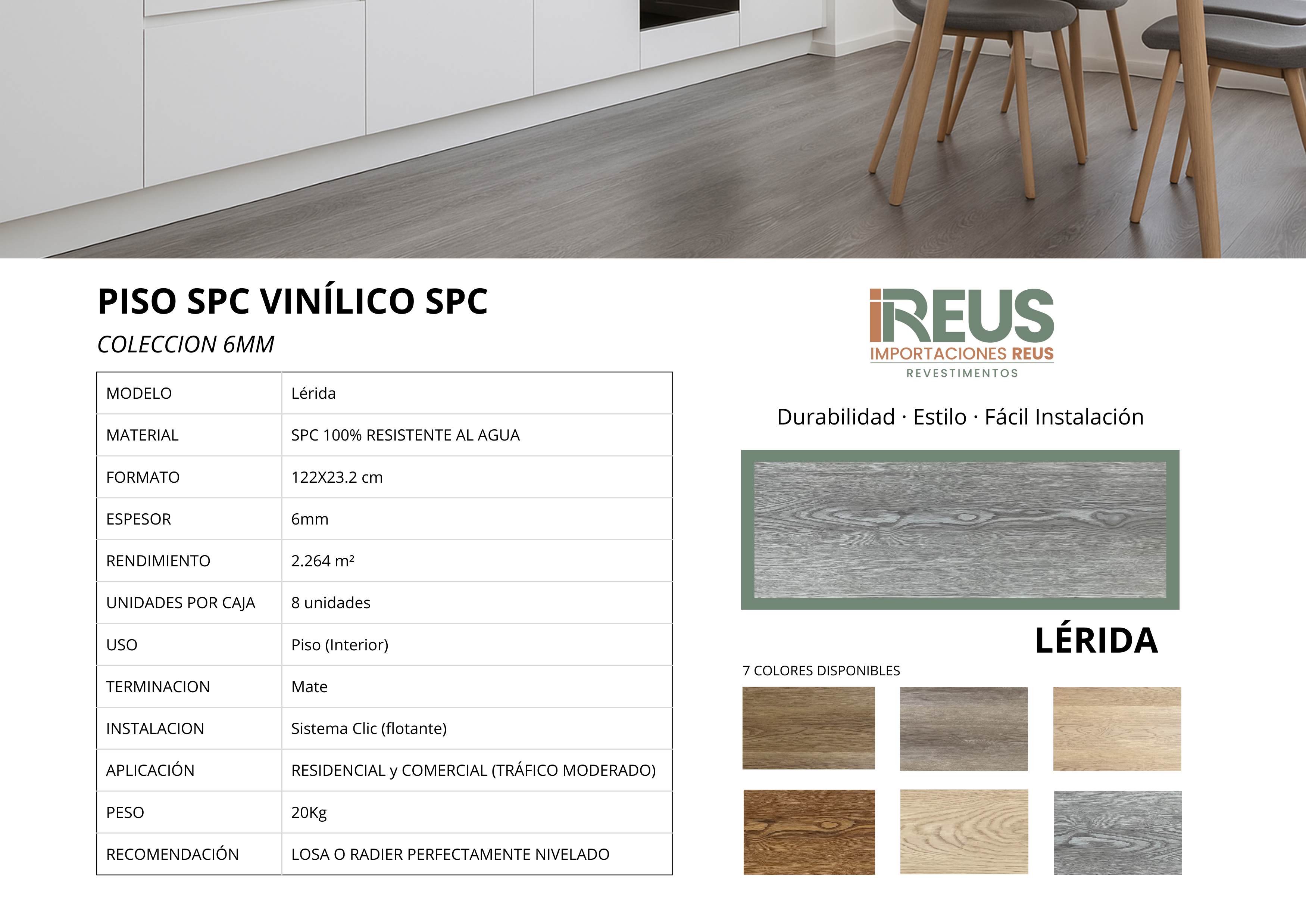 Piso SPC 122x23.2 6mm $16.470xm² - LÉRIDA Stock por sucursal Stock por sucursal $ 37.287 Textura Escoge Textura Mate Origen Escoge Origen China Espesor Escoge Espesor 6mm Formato Escoge Formato 122x23.2 cantidad Agregar al carro Encargar