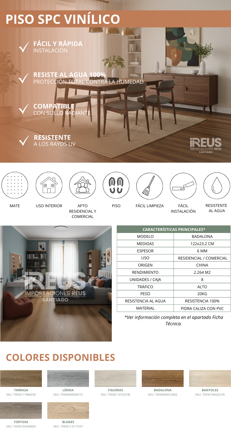 Piso SPC Vinílico 122x23.2 6mm $14.990xm² -  BADALONA2