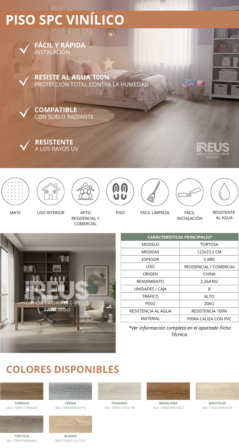 Piso SPC Vinílico 122x23.2 6mm $14.990xm² - TORTOSA Stock por sucursal Stock por sucursal $ 33.936 cantidad Agregar al carro Encargar Imágenes referenciales: los colores pueden variar según la configuración de cada pantalla.