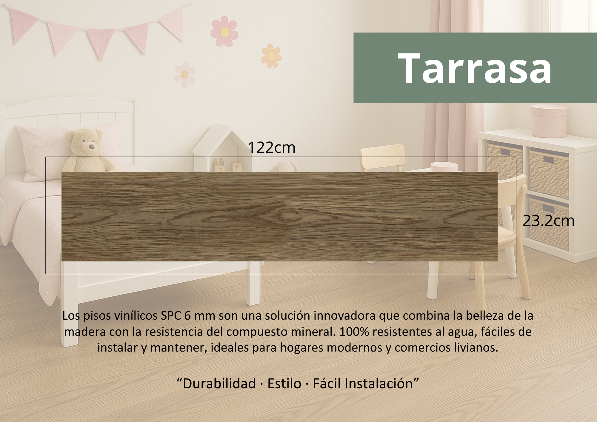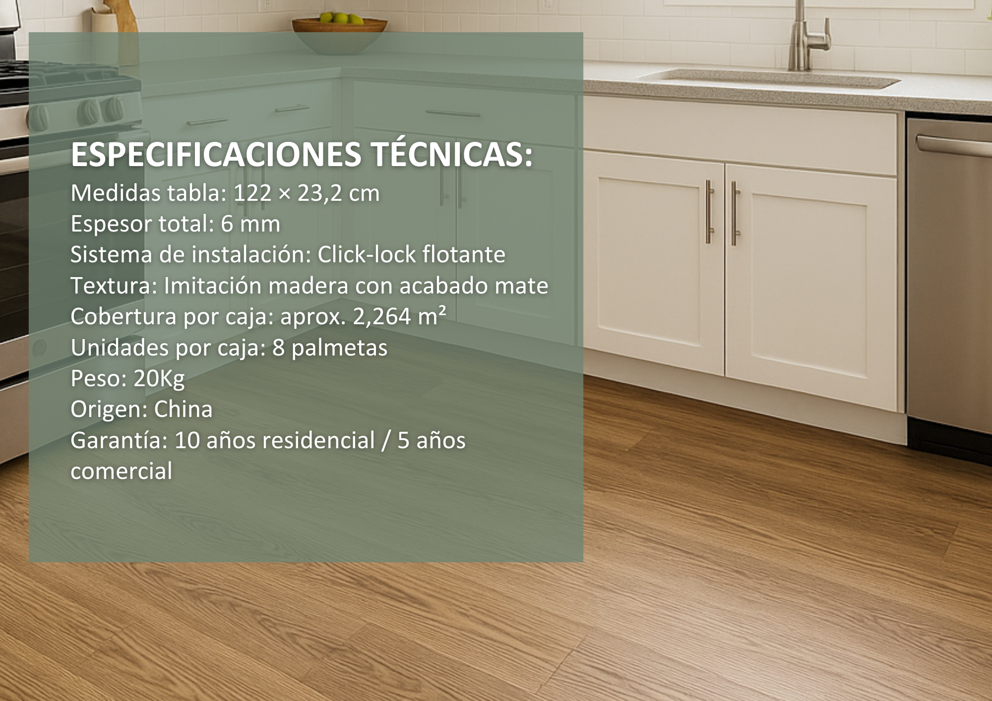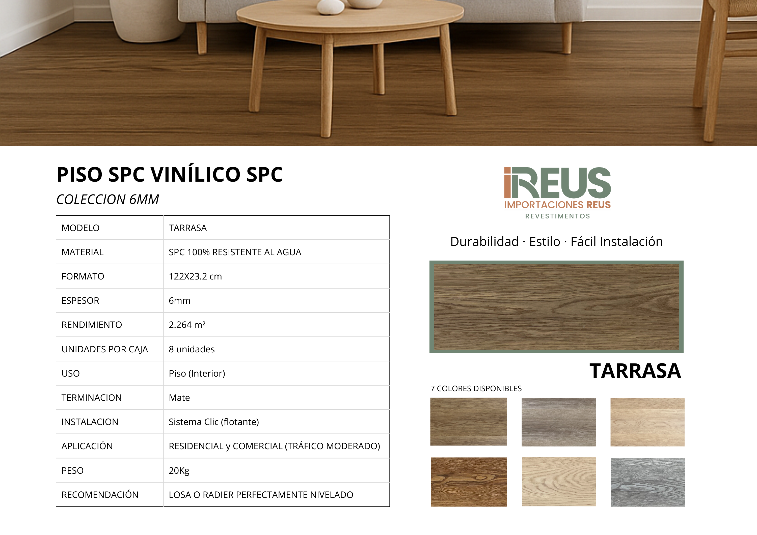 Piso SPC Vinílico 122x23.2 6mm $16.470xm² - TARRASA Stock por sucursal Stock por sucursal $ 37.287 Textura Escoge Textura Mate Origen Escoge Origen China Espesor Escoge Espesor 6mm Formato Escoge Formato 122x23.2 cantidad Agregar al carro Encargar