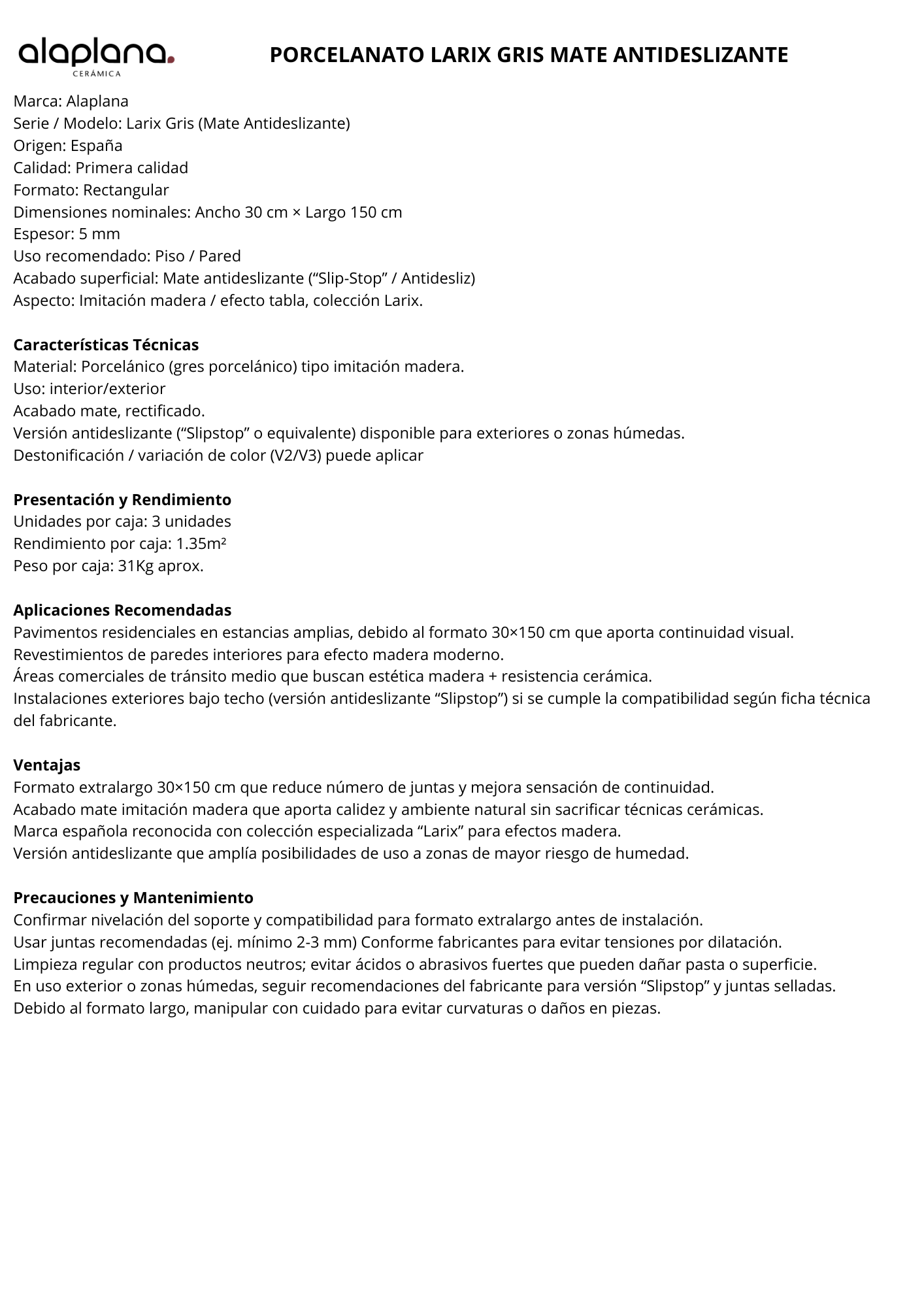 Porcelanato Antideslizante 30x150cm $19.990xm² c/iva - Larix Gris Mate