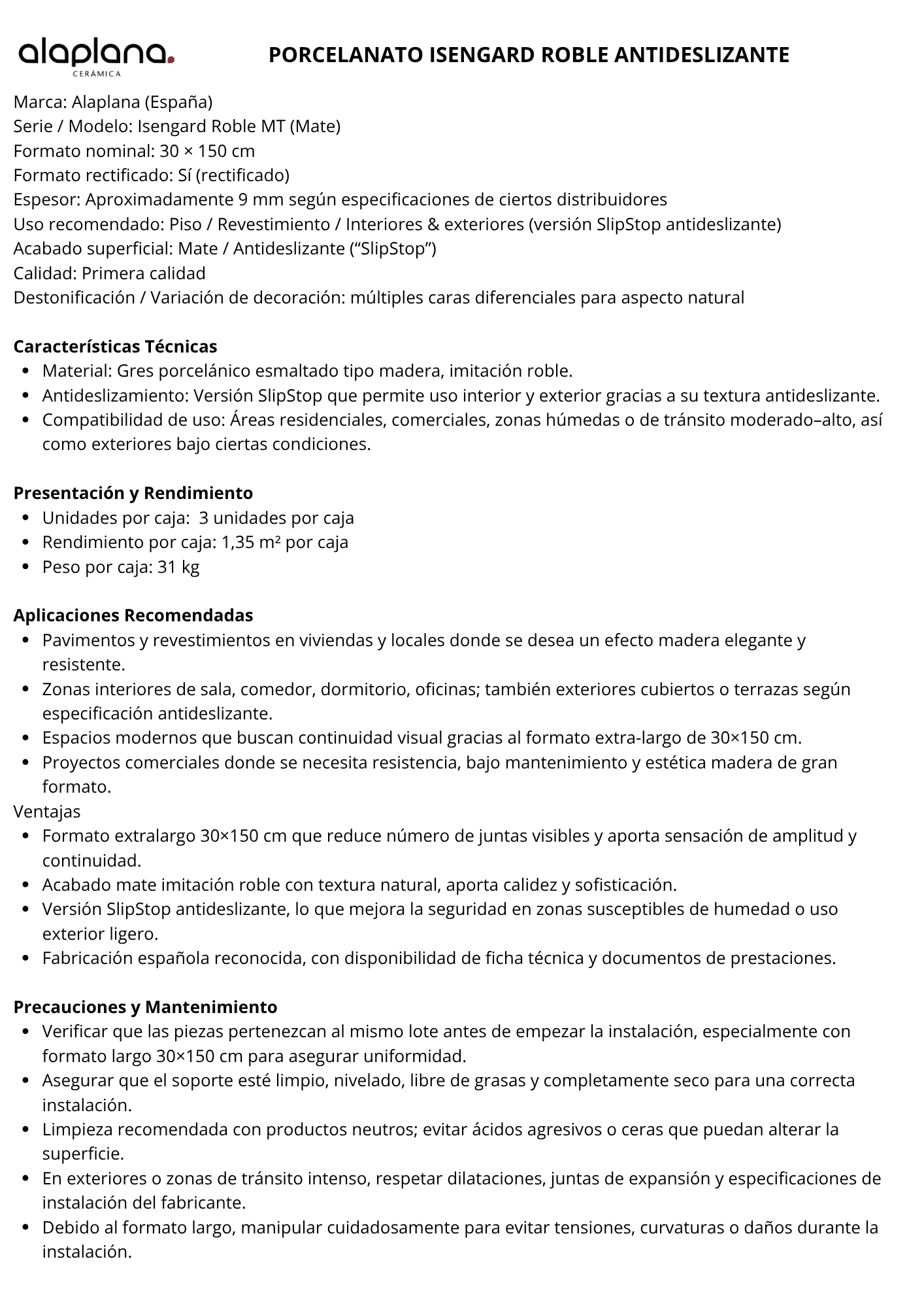 Porcelanato antideslizante 30x150cm $19.990xm² - Isengard Roble Mate