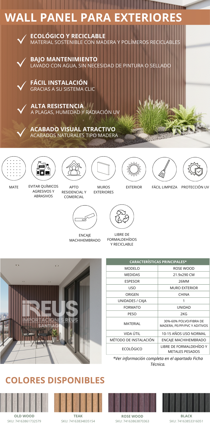 Wall Panel Exterior Cladding WPC 21.9x290cm x26mm - ROSE WOOD