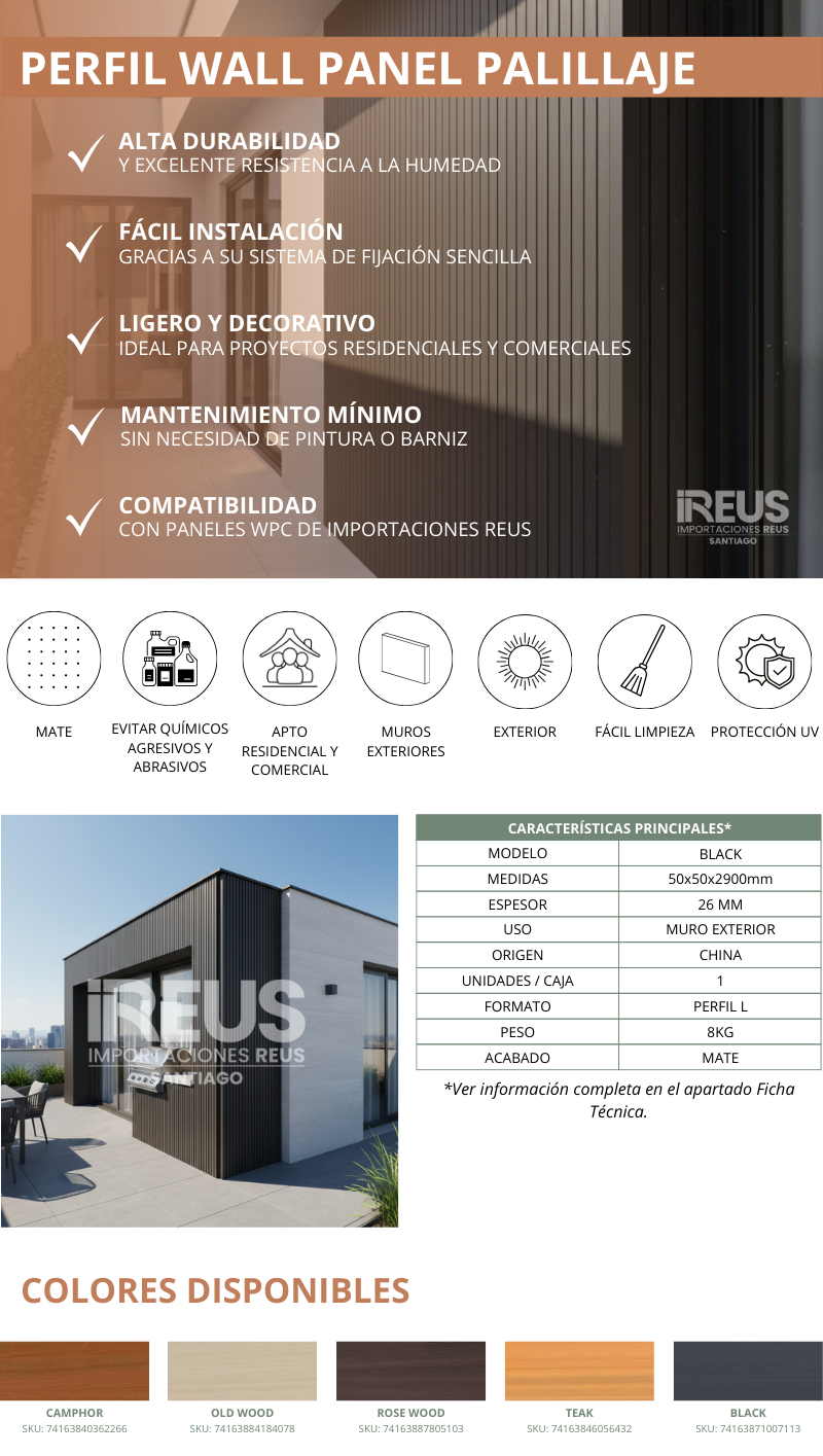 Wall Panel PERFIL L CORNER 50X50X2900mm - BLACK Stock por sucursal Stock por sucursal $ 5.490 cantidad Agregar al carro Encargar Imágenes referenciales: los colores pueden variar según la configuración de cada pantalla.