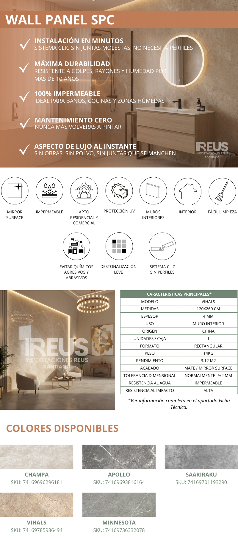 Wall Panel SPC Interior 120x260cmx4mm $10.415xm² - VIHALS Stock por sucursal Stock por sucursal $ 32.494 cantidad Agregar al carro Encargar Imágenes referenciales: los colores pueden variar según la configuración de cada pantalla.