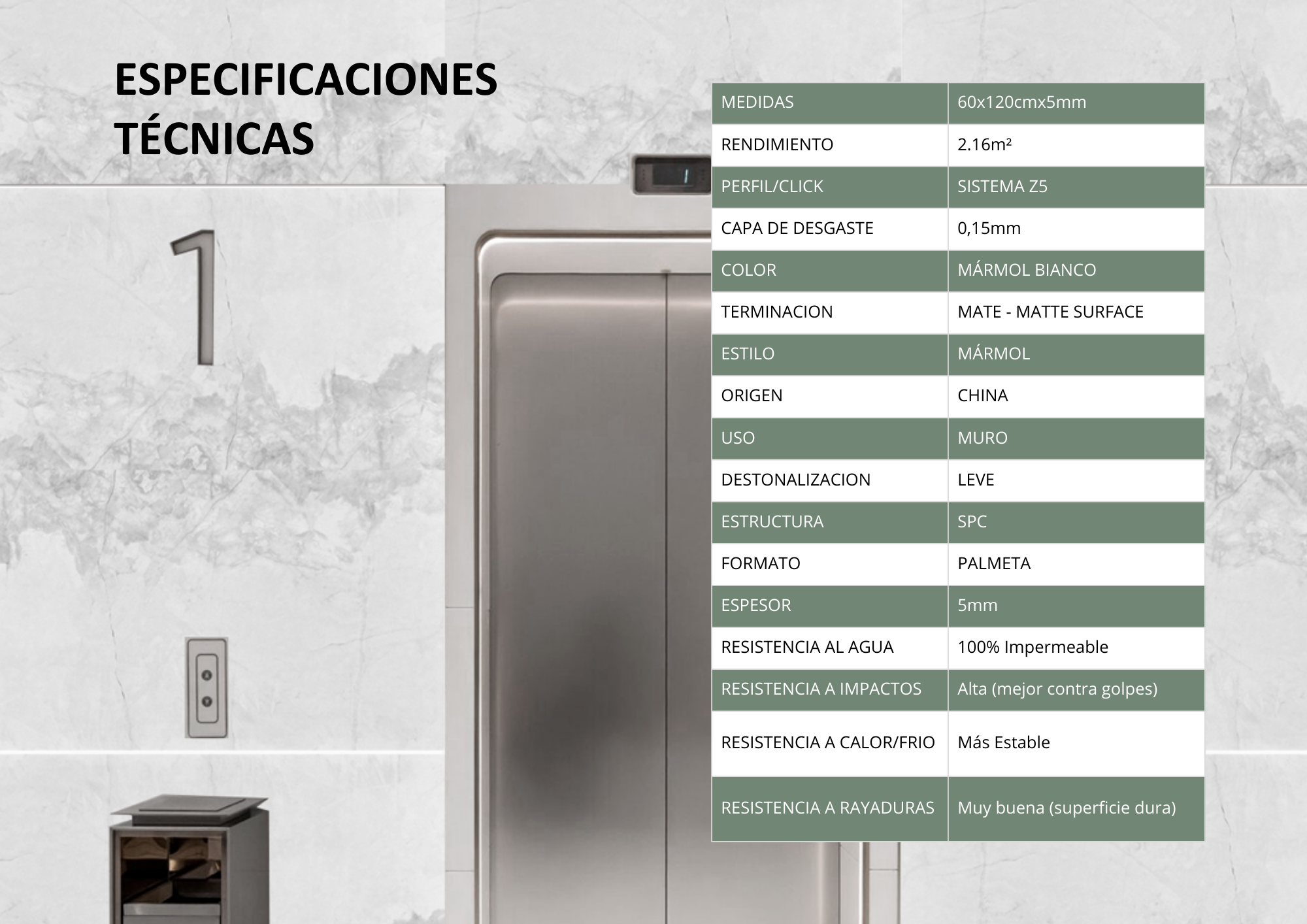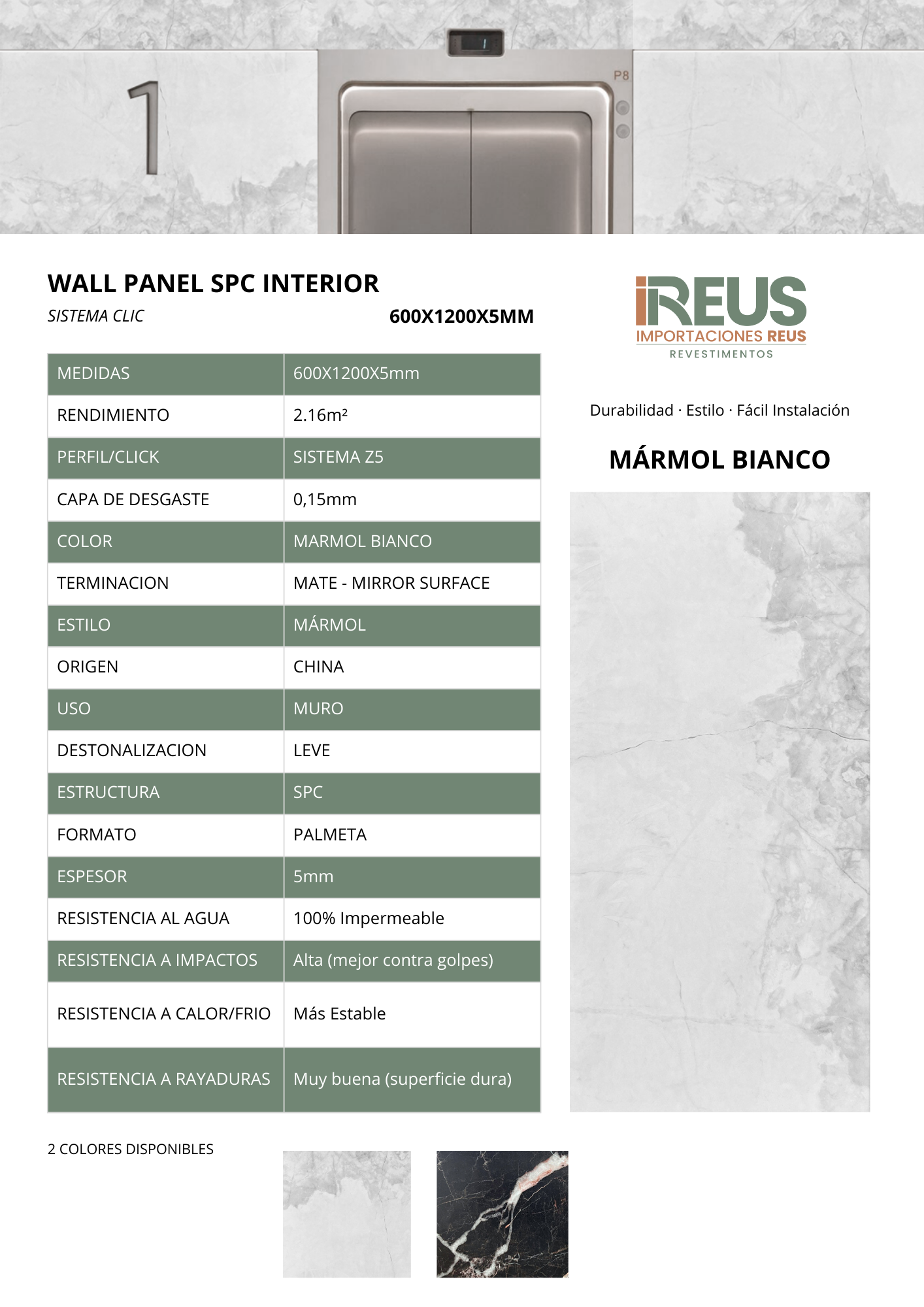 Wall Panel SPC Interior 60x120cmx5mm $10.825xm² - MARMOL BIANCO
