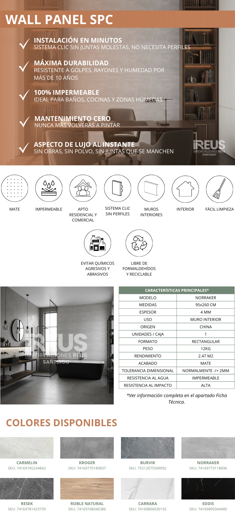WALL PANEL SPC INTERIOR 95x260cmx4mm $10.524 xm² - NORRAKER Stock por sucursal Stock por sucursal $ 25.994 cantidad Agregar al carro Encargar Imágenes referenciales: los colores pueden variar según la configuración de cada pantalla.